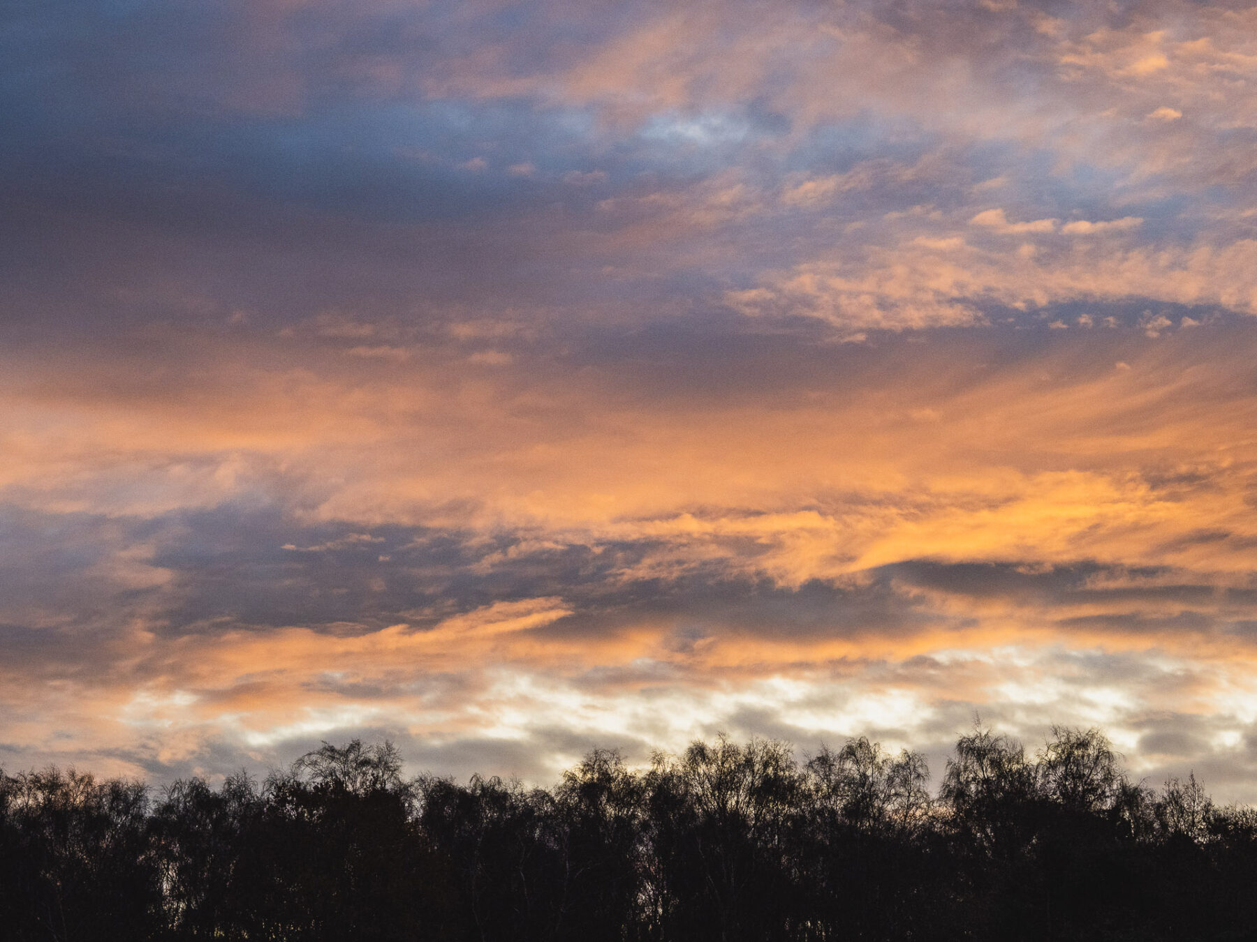 Ich hab den Hund überzeugt, dass wir raus gehen, bevor es ganz hell ist, weil ich dachte: Das wird ein richtig schöner cheesy Sonnenaufgang. Das war dann noch das letzte Fünkchen, das wir davon mitbekommen haben. Danach zog alles zu und von Sonne war nicht mehr viel zu sehen. Naja. Immerhin hatten wir dann die Morgenrunde schon erledigt. Und schön war’s trotzdem.